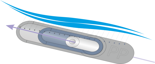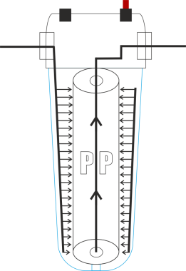 در فیلتر تصفیه آب پ پ آب از اطراف به سمت مرکز فیلتر تصفیه آب حرکت می نماید. سیال ( آب ) از سطح بیرونی فیلتر تصفیه آب پ پ به سمت داخل فیلتر حرکت می کند و در مرکز آب تصفیه شده ( به تناسب فیلتر پ پ ) جمع شده و خارج میگردد. در حین حرکت در راستای مرکز فیلتر مواد معلق در بین روزنه های فیلتر به دام افتاده واز جریان آب حذف می گردند.ذرات حذف شده لابه لای الیاف فیلتر تصفیه آب به دام می افتند و از آب جدا می گردند. بعد از مدتی بر اثر افزایش حجم ذرات مذکور در بین الیاف فیلتر مذکور افت در فیلتر تصفیه آب بالا میرود و همین افزایش امر سبب فرار بعضی از ناخالصیها از بین الیاف فیلتر میگردد. برای اجتناب از این مسئله به تعویض به موقع فیلتر تصفیه آب باید اهمیت بسیار زیادی داد و طی برنامه معین اقدام به جایگذینی آن با فیلتر تصفیه جدید نمود