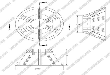 مخروطی رانش پرشر وسل یا گلدانی پرشر وسل (Thrust Cone) قطعهای است در وسلهای هشت اینچ تولید شرکت طراحان تصفیه کاربرد دارد و در قسمت خروجی پساب قرار می گیرد و به کپ وسل قفل می گردد