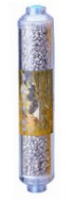 فیلتر مواد معدنی به شکل کپسولی پرشده از دانههای مواد معدنی بوده و معمولاً دارای پوستهای به رنگ زرد و بعضیاوقات شفاف و بیرنگ است و فقط در دستگاههایی با سیستم آر او بعد از مخزن ذخیره مورداستفاده قرار میگیرد. این فیلتر درجایی استفاده میشود که به دلیل استفاده از سیستم آر او میزان تی دی اس آب و درنتیجه مواد معدنی بهشدت کاهشیافته و طعم آب مشابه طعم تلخ شدیدی است و برای کنترل میزان تی دی اس امکانات لازم از طرف تولیدکننده روی دستگاه پیشبینینشده و یا مصرفکننده به خاطر جلوگیری از میکس شدن آب قبل از ممبران حتی به مقدار خیلی کم با آب بعد از ممبران، تمایلی به استفاده از شیر میکس یا تی دی اس ندارد. درواقع آب تصفیهشده در اثر عبور از این محفظه و برخورد با املاح معدنی مقادیری اندک از این املاح را در خود حل میکند درنتیجه تی دی اس اندکی افزایش مییابد. زمان تعویض آن بسته به میزان آب عبور کرده از آن یا همان میزان مصرف آب داشته و ظرفیت تصفیه آب با واحد لیتر یا گالن روی آن درج میشود و معمولاً هر یک سال یکبار تعویض میشود. این فیلتر بهعنوان فیلتر مرحله شش نیز نامیده میشود